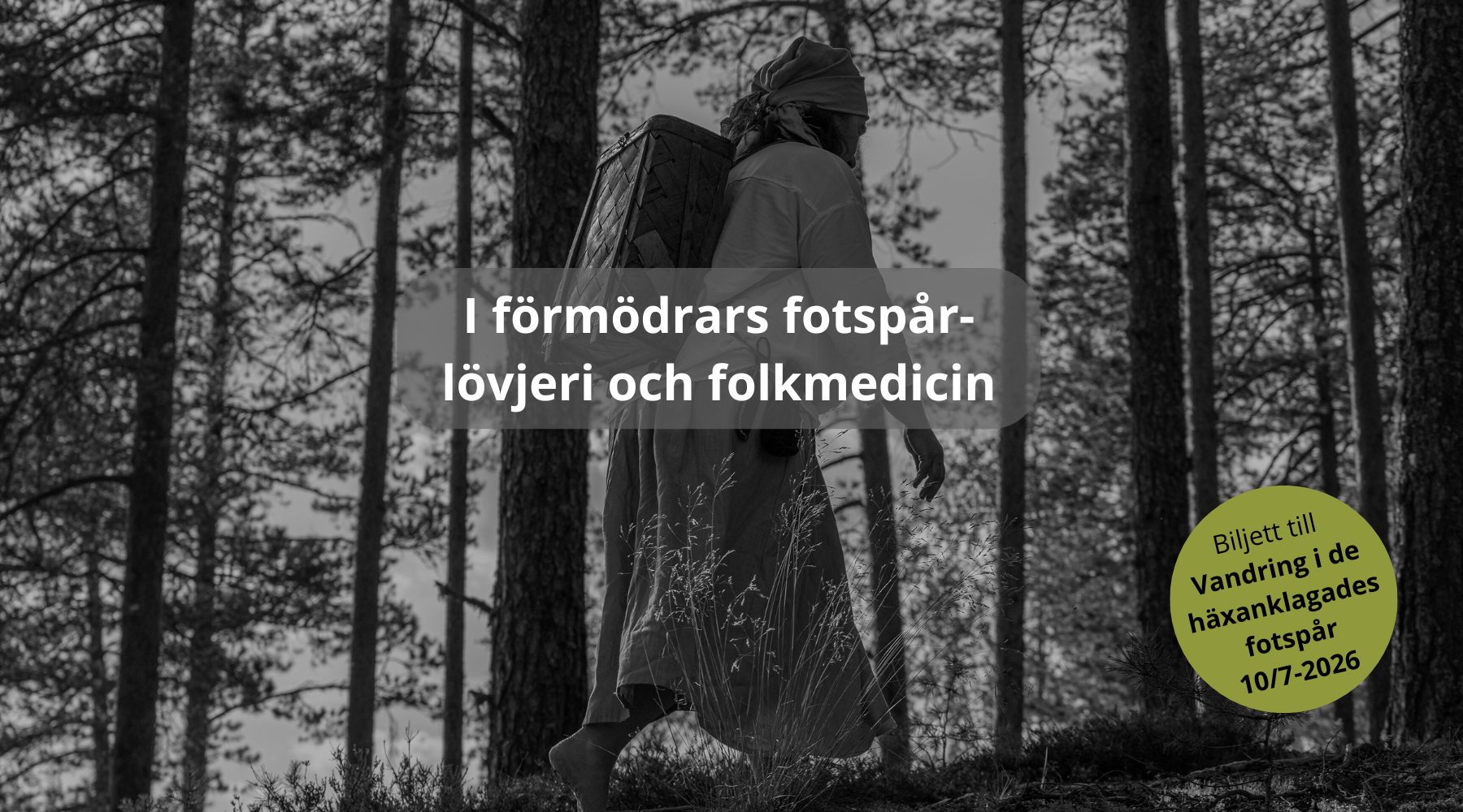 Art.nr: vandring-i-de-haxanklagades-fotspar-2026En tankeväckande vandring i Älvdalen, till platsen där avrättningarna av häxanklagade en gång ägde rum. Vi tar avstamp i 1400-talet och följer hur föreställningen om häxor växer fram och sprider sig, tills den når Älvdalen – där det stora oväsendet tar sin början. Längs vägen lär vi känna några av de kvinnor som anklagades: de som sades färdas till Blåkulla och bära på den gamla kunskapen, lövjeri – en kunskap som kom att avgöra deras öde. En vandring genom historia, myt och mänskliga öden. Fredag 11 september 2026 Kl 13.00-15.00 Plats: Start vid Mimmikulle i Mjågen. Fika ingår