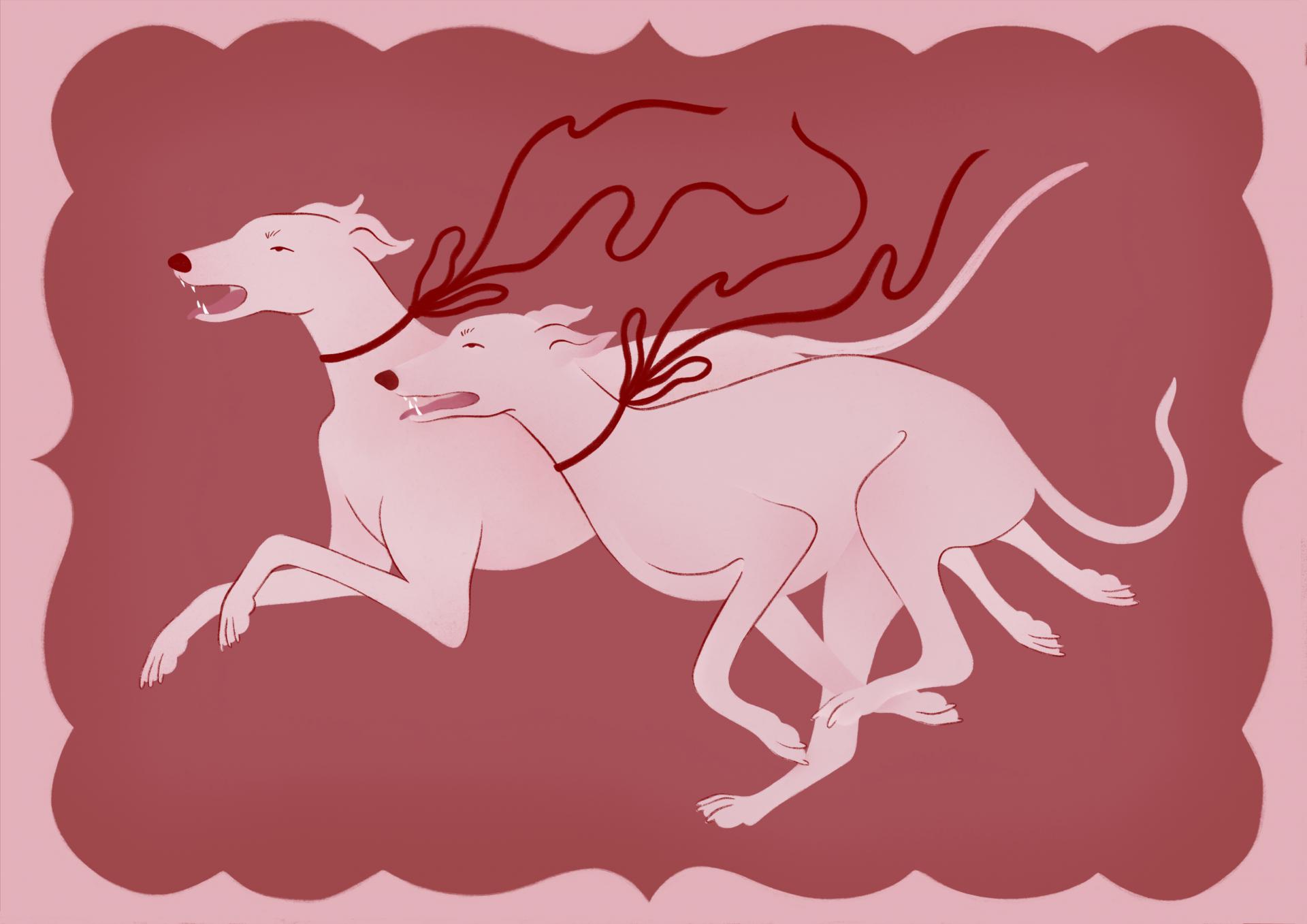 Art.nr: lekande-vinthundarA3 (297x420) Digitaltryck